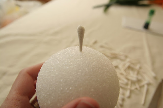 Stonku zapichnite do gule s tyčinkami. Môžete ju zabezpečiť aj lepidlom z tavnej pištole.
