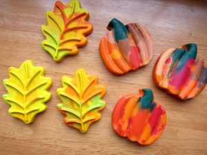 Polámané voskovky už dávno nepatria do smetného koša. Môžeme ich premeniť na nové, v tvare, aký si len vyberieme. Dnes si spravíme voskovky v tvare lístia a tekvice.