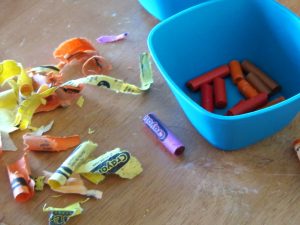 Zo všetkým voskoviek odstránime papierové obaly, aby zostala holá voskovka. Ak chceme, farby môžeme prispôsobiť ročnému obdobiu. Na jeseň zvolíme prevažne žlté, oranžové, červené, zelené, fialové a hnedé farby. Na jar zas jasné žlté, svieže zelené, ružové, svetlé modré farby.