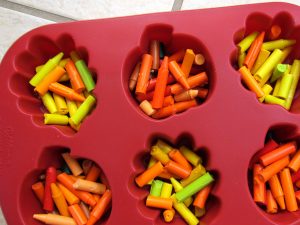 Polámané voskovky rozdelíme do formičiek.