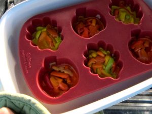 Voskovky pečieme do rúry na 200°C na 20-25 minút, alebo dovtedy, kým sa nezačnú roztápať. Formu môžeme položiť na plech na pečenie, lepšie sa forma vyberá z rúry.