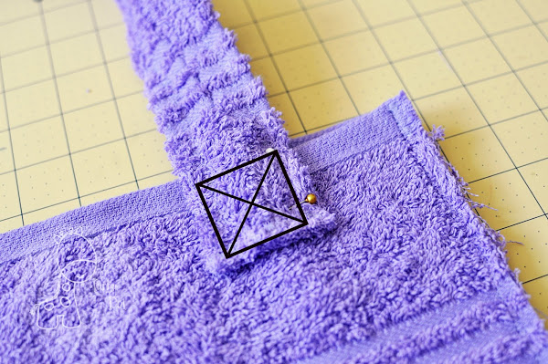 1. Preložte uterák na polovicu aby ste vytvorili tvar tašky.