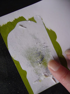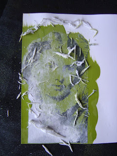 Vezměte zkopírovaný obrázek, můžete ho i obstřihneme a obličejem dolů ho položte na karton namalovaný akrylovou barvou.