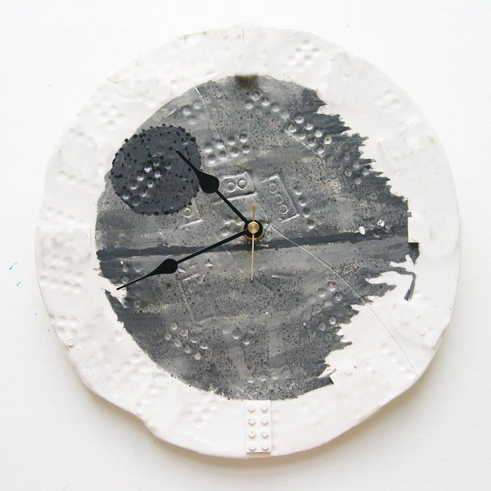 Potom do středu kruhu uděláme díru na hodinové ručičku a na zadní stranu hodin přilepíme hodinový strojek.