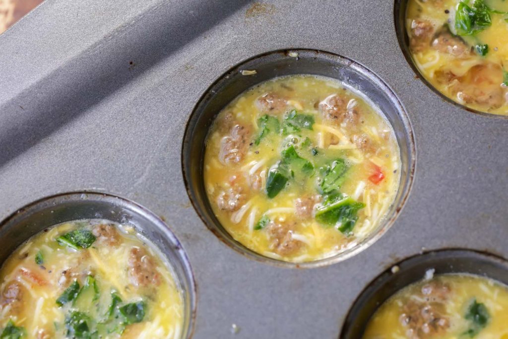 Nejprve rozbijeme vajíčko, rozmícháme ho a přidáme do něj všechny ingredience, které chceme. Zeleninu předtím nasekáme na menší kousky.